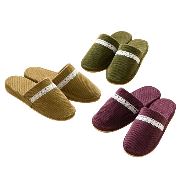 XM678 コーデュロイスリッパ イングリッシュクロス 3色組(ワイン系・グリーン系・イエロー系)【健康サンダル・スリッパ】
